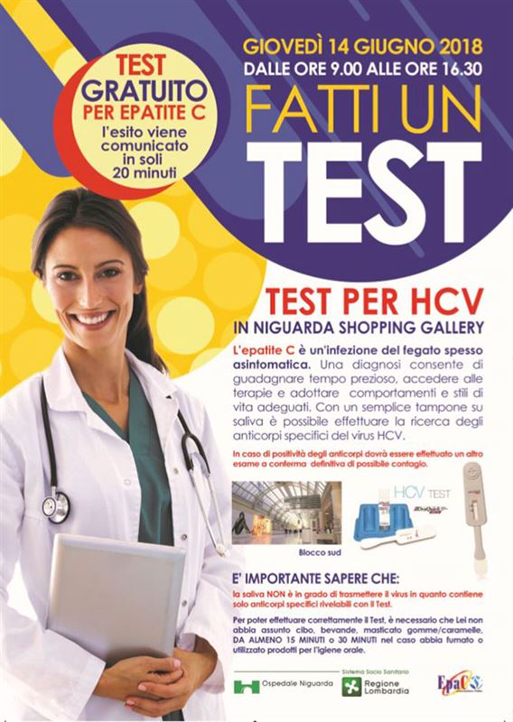 Il giorno 14 Giugno presso l’Ospedale Niguarda si terrà una giornata di informazione e prevenzione con la presenza dei medici dell'Hepatitis Center dell’Ospedale Niguarda di Milano e i responsabili dell’Associazione EpaC Onlus.